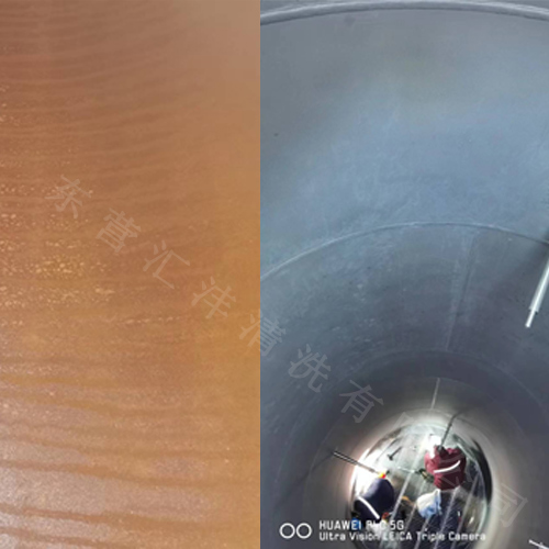 除以上清洗方法以外,再進行碳鋼儲罐清洗時還可以選擇化學清洗方法,下面可以看一下,匯灃清洗的技術人員進行碳鋼儲罐化學清洗的前后照。